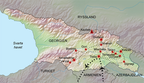 Färden går vidare till Stalins hemstad Gori, den vackra kurorten Borjomi med dess berömda mineralvatten samt den fantastiska grottstaden Varzia.